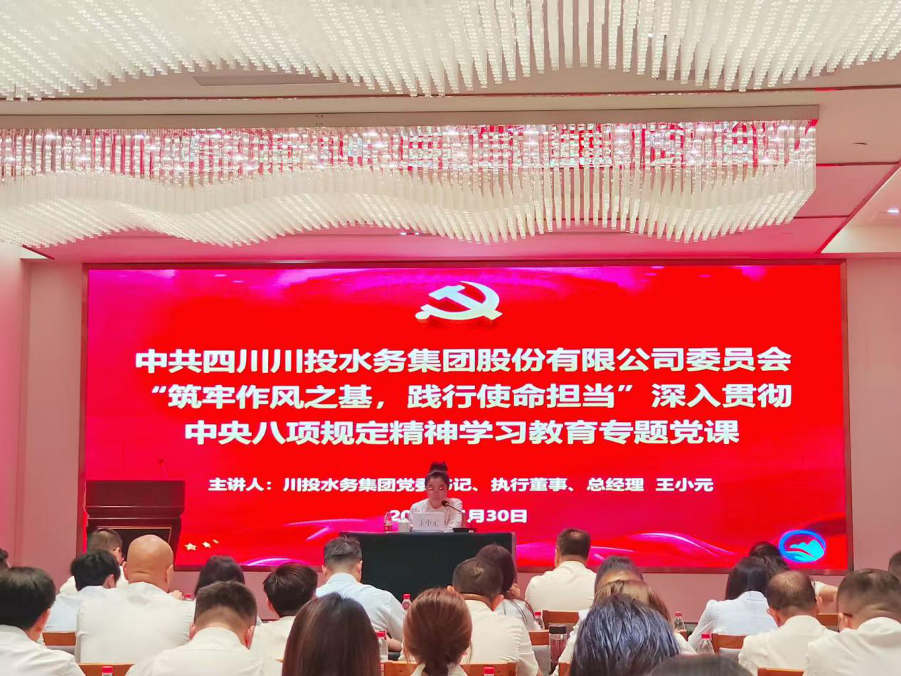 6月30日,在中國(guó)共產(chǎn)黨104周年華誕來(lái)臨之際,四川川投水務(wù)集團(tuán)召開了深入學(xué)習(xí)中央八項(xiàng)規(guī)定精神專題黨課暨“七一”表彰大會(huì)。集團(tuán)黨委書記、執(zhí)行董事、總經(jīng)理王小元作專題授課,黨委委員、副總經(jīng)理徐子銳主持會(huì)議。